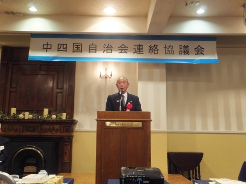 2月22日に鳥取県倉吉市で開催された平成30年度中四国自治会連絡協議会に鈴木会長が出席し、挨拶を述べました。
